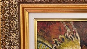 Artista Fernando. Guerra, tema caballo indio encabritado pelaje indi0 blanco manchas cafĆ©s, oleo sobre madera, 80×126 cm, marco flotante. Certificado de autenticidad, pieza decorativa y de colección arte equino. Listo para colgar.